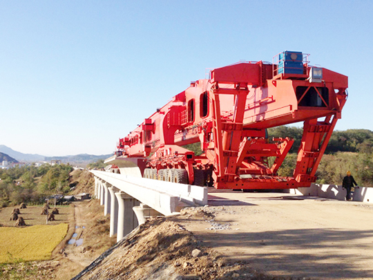 公司主要設(shè)備有:SLJ900T流動式運(yùn)架一體機(jī)、SXJ900T/32M分體式架橋機(jī)及運(yùn)梁車、MG450T提梁機(jī)(跨度有35M~40M,起升凈高20~40M)、ME900T提梁機(jī)、SXJ550T/32M一跨式架橋機(jī)及運(yùn)梁車、SGTJ180T鋪架機(jī)等高鐵運(yùn)架設(shè)備。